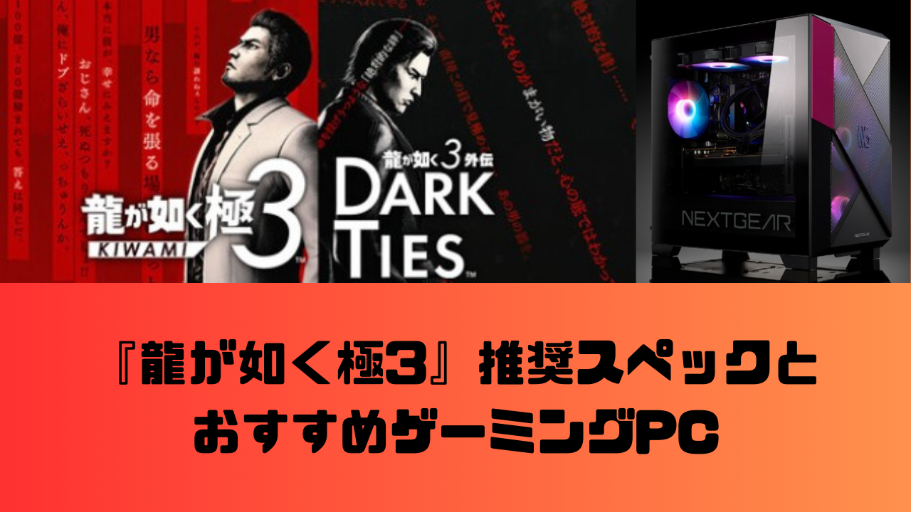 本記事では、『龍が如く 極3』を遊ぶために必要なスペックと、快適に遊べるゲーミングPCを紹介します。 結論として、『龍が如く 極3』を快適に遊ぶには、RTX3060(12GB)のグラボが必要ですが、最新モデルであればRTX5060で快適に遊べます! この記事でわ... ゲーム別おすすめPC