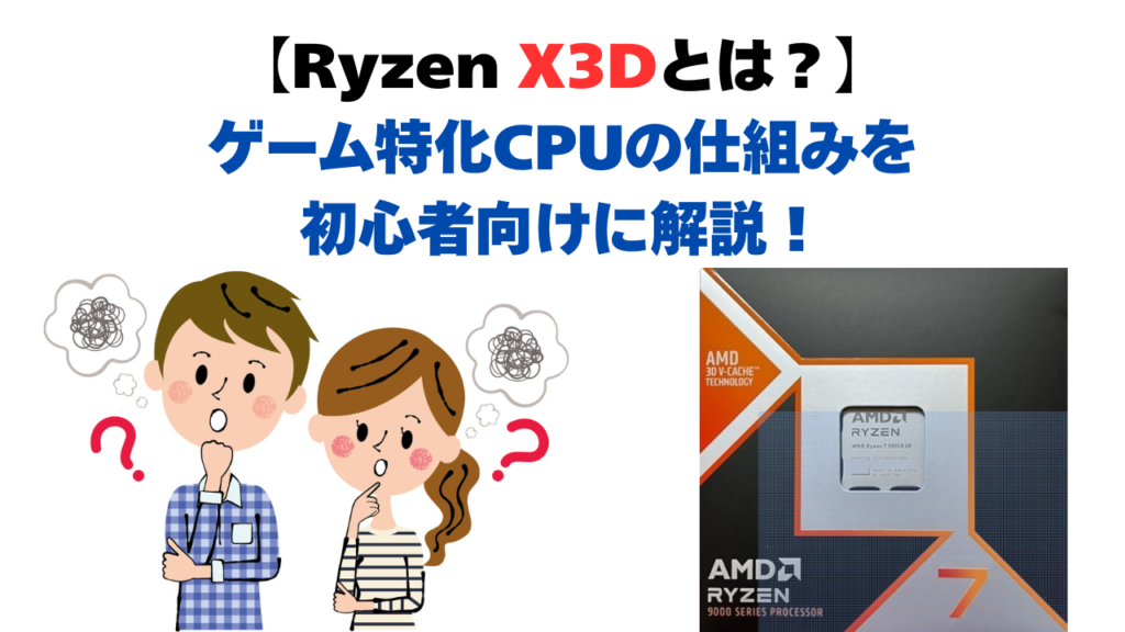 RyzenのX3Dシリーズは、“ゲーム目的最強”とも言われるほど人気の高いCPUです。 しかし、その理由を深掘りしようとすると 「X3Dって何が違うの?」 「3D V‑Cacheってどういう仕組み?」 「通常のRyzenとどこが変わるの?」 と疑問が出てくる人も多いはずで... PC初心者向け