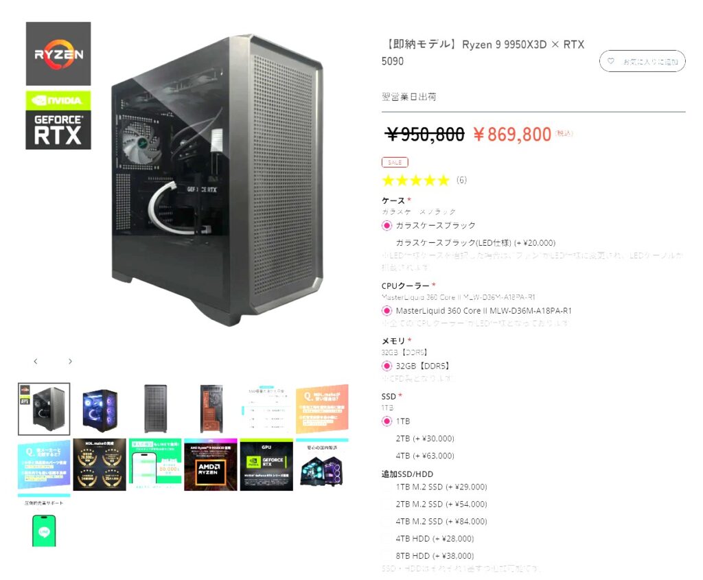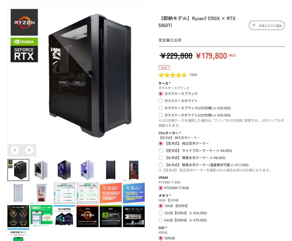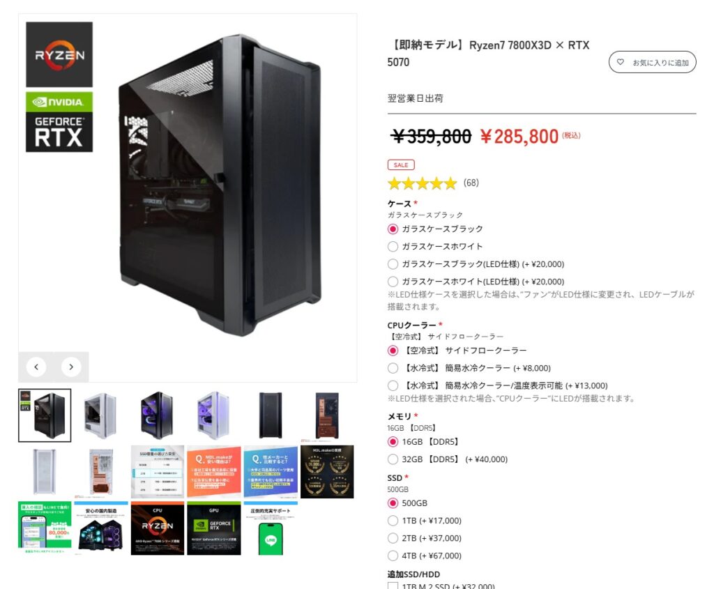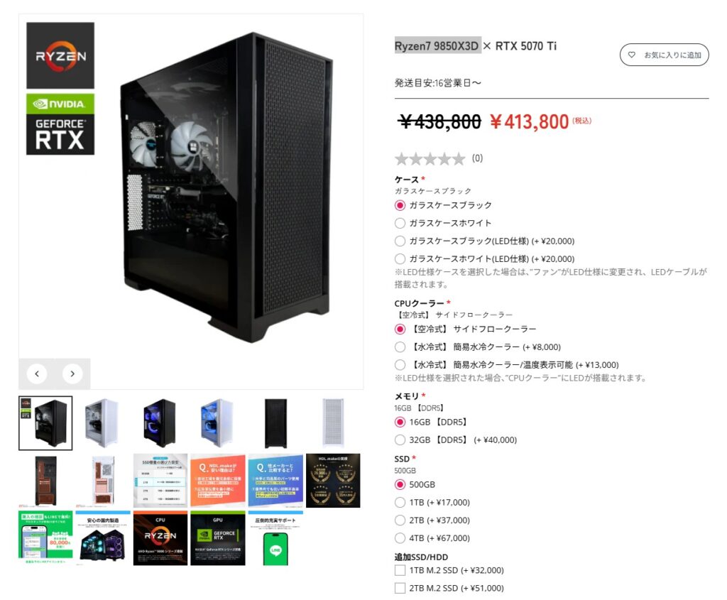 調べたところMDL.maPCのメリット(良い点)は安い機種が非常に多い点です。特にハイエンドゲーミングPCのRyzen 9 9950X3D+RTX5080など高性能PCは構成内容の多少の違いはあれど価格差がえげつないです。