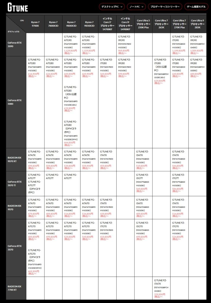 | GPU | ・RTX 5070 ・ RX 9070XT |