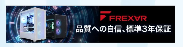 激安BTOメーカーとして知られるフロンティアから誕生した新ブランド FREX∀R(フレクサー) は、2025年10月1日に登場しました。 「高品質パーツと信頼性を追求したゲーミングPCブランド」というコンセプトのもと、従来のフロンティアとは一線を画す手厚いサポート体制を備えているのが特徴です。