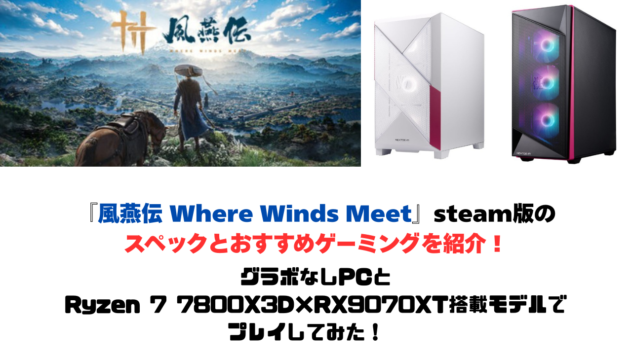 公式推奨スペックより高性能なゲーミングPCが理想です。これからゲーミングPCを購入する場合はNEXTGEAR JG-A7G60(Ryzen 7 5700X×RTX5060)がおすすめです。
