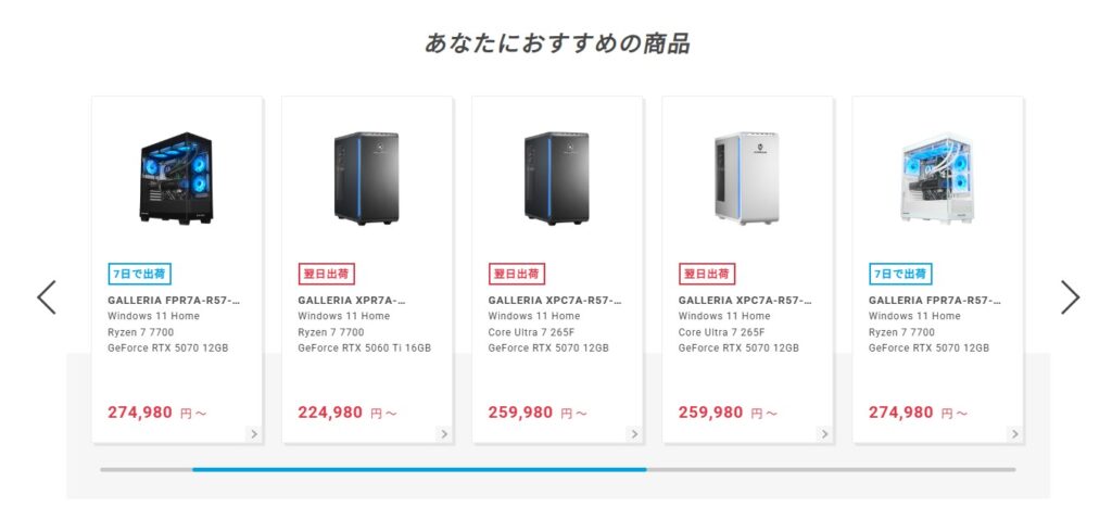 ドスパラ公式サイトにはゲーマー目線に立った表示がされています。