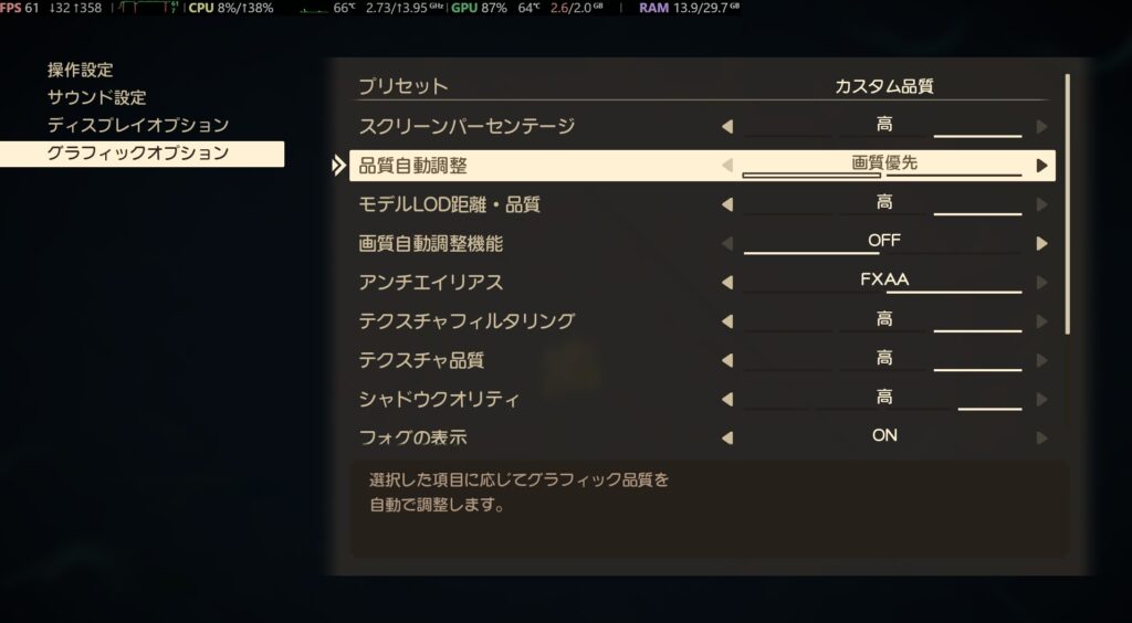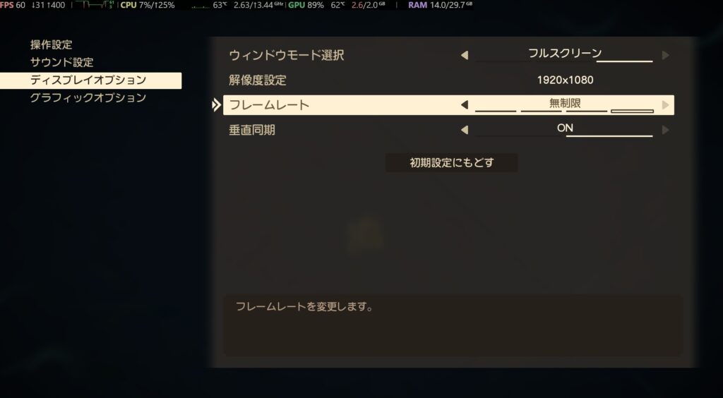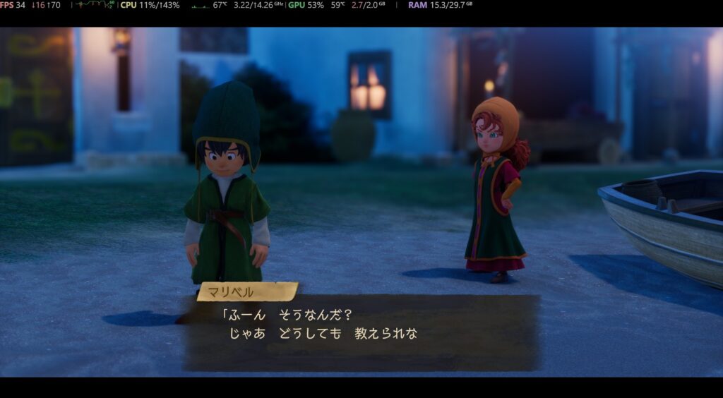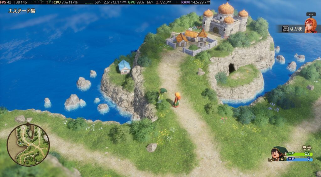 グラボはRTX 5060Ti のためフルHD解像度において『ドラクエ7リメイクPC(steam)』版を高~最高設定でも安定したプレイが可能です。